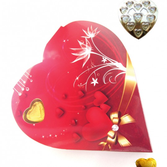 11 pieces of heart shape milk chocolate in a red color heart box.A product to share your feelings in a perfect manner