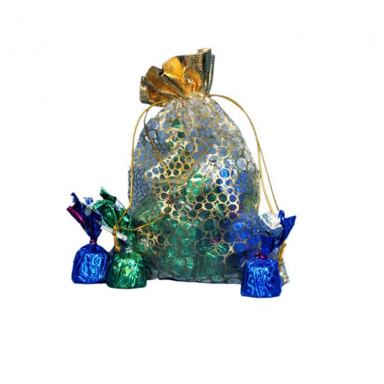 MoShik’s Homemade Milk Candy Fruit Chocolates in a multicolor multidesigner pouch.Weight 100 grams(approx 12-15 pieces)